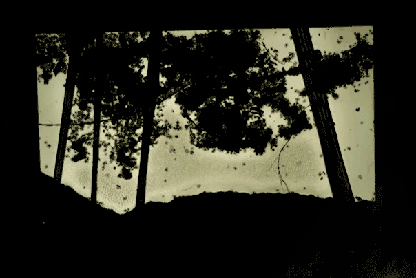Le rythme est obtenu par le bidouillage de la télécommande du projecteur, qui permet d’alterner accélérations, pauses et noirs entre les images, transformant ces interruptions en véritables ressources créatives. L’expérience détourne l’esthétique numérique vers un langage matériel, où miroirs, projecteurs et supports photosensibles réinventent la dynamique du mouvement.